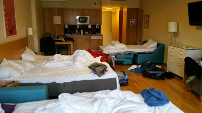 Hotellet är inte det flottaste, men frukosten är riktigt bra. Nu inväntar vi inspiration att ta oss ut och iväg till storstaden, världens fyra bästa killar och jag.