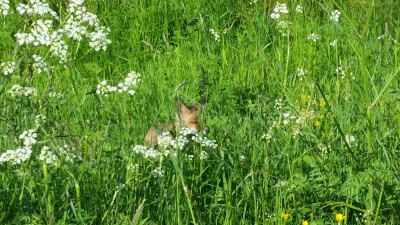 På väg till skolavslutningarna mötte vi två harar, en katt och den här godbiten. Tyvärr var den helt orädd, så vi får hoppas att den lär sig att akta sig för bilar och människor. Vi fick i alla fall en fin liten stund att börja dagen med.