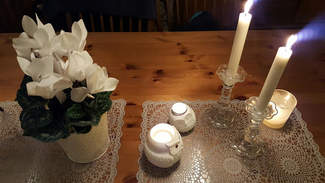 Trots att dagen varit bra, fick jag kvävande ångest av att köra hem i mörker. Jag är så jävla trött på att vara slav under ångesten! Under de här månaderna som sjukskriven har jag blivit mycket bättre än innan på att möta och mota den, men när den tar strypgrepp på mig är det kört. Nu stannar jag vid köksbordet och tar fram pennorna.