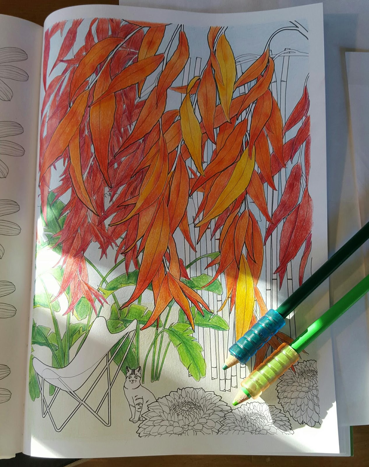 Oj, vad den här fredagen rullar i moll. Jag har fixat disken och sedan var det stopp. Färglägger i korta stunder. Tänker ge mig själv en tupplur på soffan innan det är dags att köra till byn. Ska lämna saker till Olle som ska sova hos kompis och sedan handla. Får väl se vad jag kommer hem med…