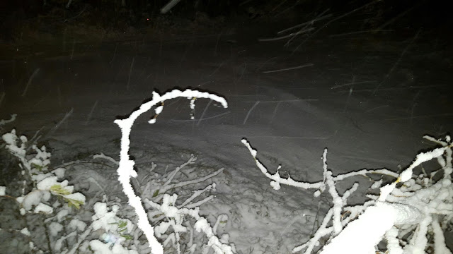 Jag är en snöälskare. Min kärlek vet dock gränser. Snögränsen är nådd när vi inte kommer ut med bilen. Så min hjälte ska snart köra upp sin bil till soptunnorna. Under tiden passar vi på att njuta av de stora, tysta flingorna.
