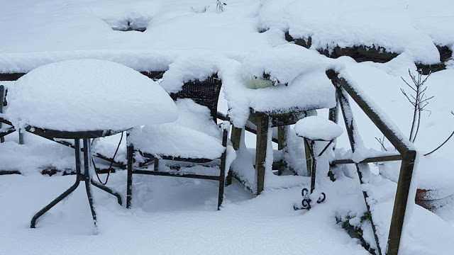 Vinden viner och det snöar fortfarande. Vår väg är långt ifrån farbar. Sten har pulsat till min bil för att skotta snö och hämta Olle i Svalöv. Jag är glad att vi har gott om mat och ljus hemma. Inget längre strömavbrott ännu, men vi ropar inte hej. Nu vill jag ha hem mina killar, men jag får snällt vänta. Om jag håller för öronen mot blåsten när jag tittar ut ser det i alla fall mysigt ut…