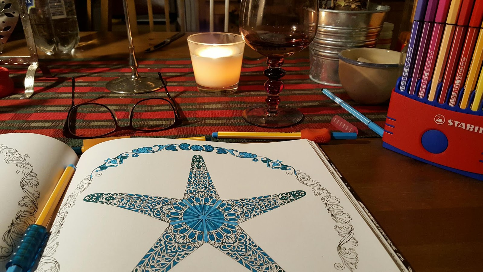 I kväll är vi inte särskilt sociala i Paradiset Rävetofta. Olle kom inte hem, han sover hos en kompis i stället. Kalle häckar framför TV-serier på datorn. Ville spelar. Sten sitter framför sin laptop och jag har sällskap av diverse skönsjungande män medan jag sippar vin och pillar i min senaste målarbok.