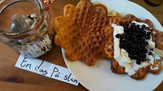 Ett pass på cykeln. Ett telefonsamtal från en vän. Mandelvåfflor och presenter. I dag får jag bestämma allt. Så jag har bestämt att vi bara ska mysa tillsammans. Fina grejjer.