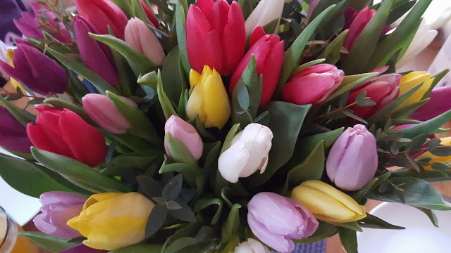 I dag var det min tur att få 44 tulpaner i en fantastisk bukett. Tack mamma och H.