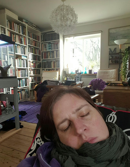 Tidig morgon, två högljudda timmar i förskolan, polisen, piercing på apoteket, kebablunch med fjortis, veckohandlat, fått ont i halsen, bytt kläder, kraschat.