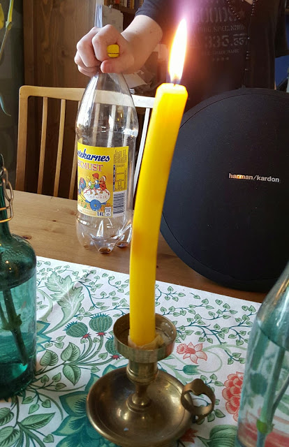 Se så fint vi pyntat dagen till ära. Middagen var riktigt god men slutade i sura miner pga trötta tonåringar. Tur att jag har mitt vackra påskljus att njuta av.