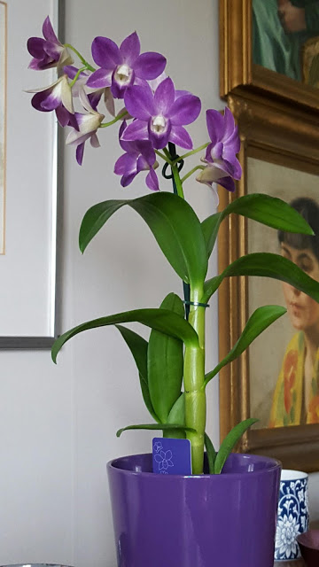 Den här spröda skönheten hittade jag på Bauhaus för ett par veckor sedan. Hon har stått i skuggan av tjugo tulpaner, men i dag kom hon fram i det bleka ljuset.