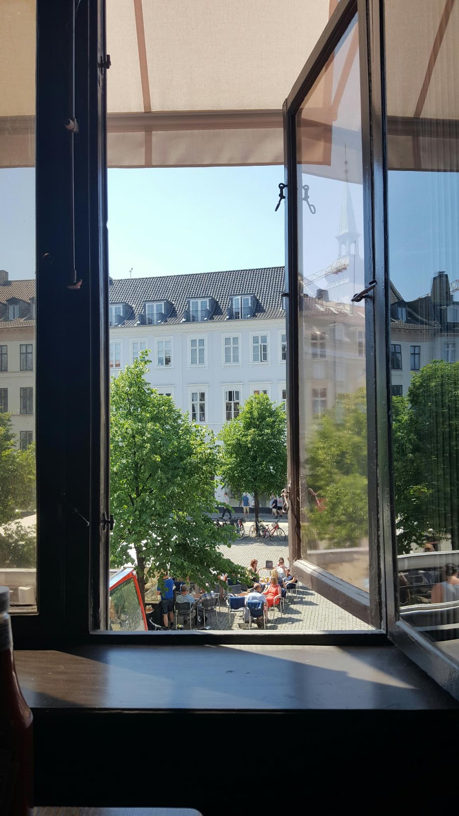 Hovedbanegården, Hamleys, väsk- och klänningsaffären, Tiger, Lego, lunch på Friday’s, stillsamt strosande i värmen tillbaka längs Ströget.