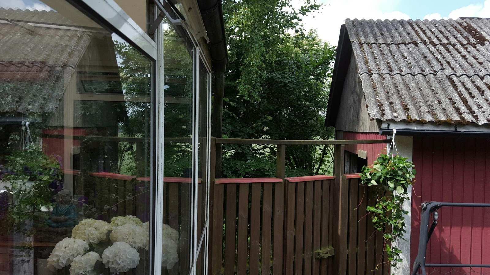 Jag kom knappt ur sängen i dag. När älskade Nina skrev att hon och finaste Catrin inte kan komma i dag heller valde jag att vända mig om, dra täcket högre upp, starta ljudboken och ligga kvar. Nu sitter jag i ett svalt uterum med åskhuvudvärk. Ville och jag vill bada men inte utan Kalle. Kalle har också huvudvärk och vill inte. Jag borde träna men med den här skallen i 27 grader känns det ogörligt. En svalare vind drar genom rummet nu men det blir nog inte tillräckligt för motion med skallebank. Efter frukosten ska jag i alla fall städa badrummet. Mer nytta än så blir det nog inte gjort i dag. Jobbledig eftersom jag redan jobbat sex timmar den här veckan. En dubbel treo i beroccan och hopp om en bra dag trots ändrade planer.