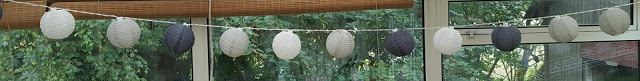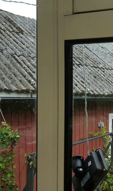 Köpte ljusslinga på CO i går. Bad Olle om hjälp att pyssla ihop den och hänga upp den. När den väl var på plats var orken slut. Nu hänger solcellerna löst utanför fönstret. Månntro de hinner blåsa bort i någon höststorm innan jag åtgärdar det…
