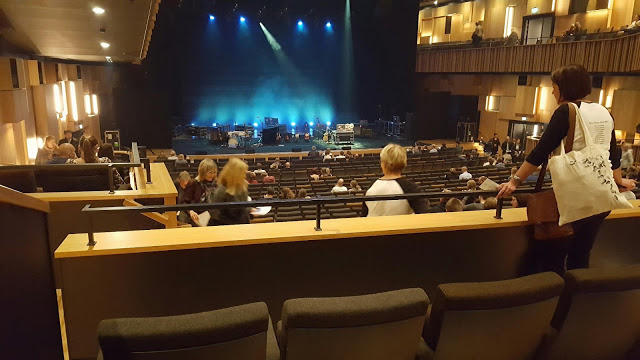 Jag hade en plats på rad fyra men den försvann på väg mot betalningen. Nu är jag glad för det. Här uppe i ett litet hörn sitter jag bra.