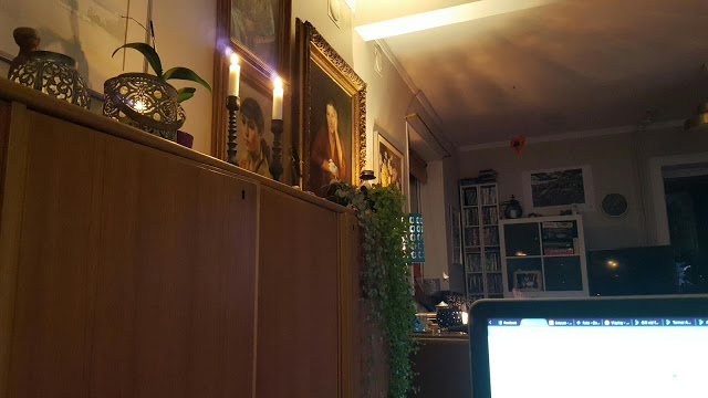 Strömmen kom tillbaka på utsatt tid nummer två. Jag skyndade mig in i duschen och fixade kaffe och tevatten. Mina kära kollegor kom hit och vi höll ett trivsamt styrelsemöte vid köksbordet. Sten eldar i pannan och jag ska dricka rooibos och titta på teve.