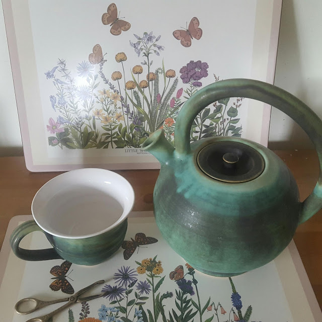Det enda jag har orkat i dag är lite kökspyssel och matlagning. Fisksoppa på g i slökokaren, minsann. Solen tittar fram därute. Jag dricker te i min fåtölj.