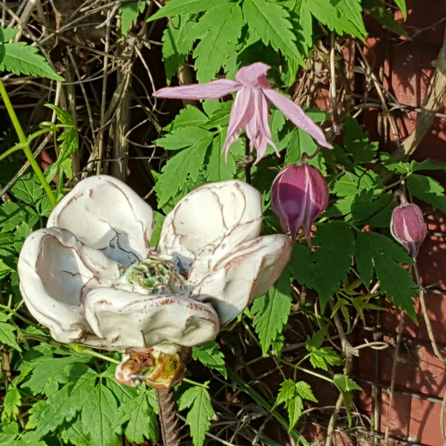Om man tittar bortom havet av höga maskrosor i den oklippta gräsmattan kan man se det här fina humlebadet. Utan vatten, men det spelar ingen roll för humlorna stortrivs hos oss ändå.