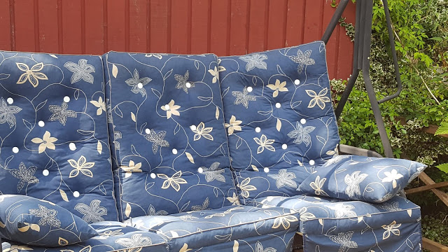 Snart är det skugga över hammocken. Då ska jag njuta sommar. Islatte och gungande ljudbok. Kanske ett korsord. I väntan på skuggan sitter jag vid fläkten i uterummet. Det är ovant med värme.