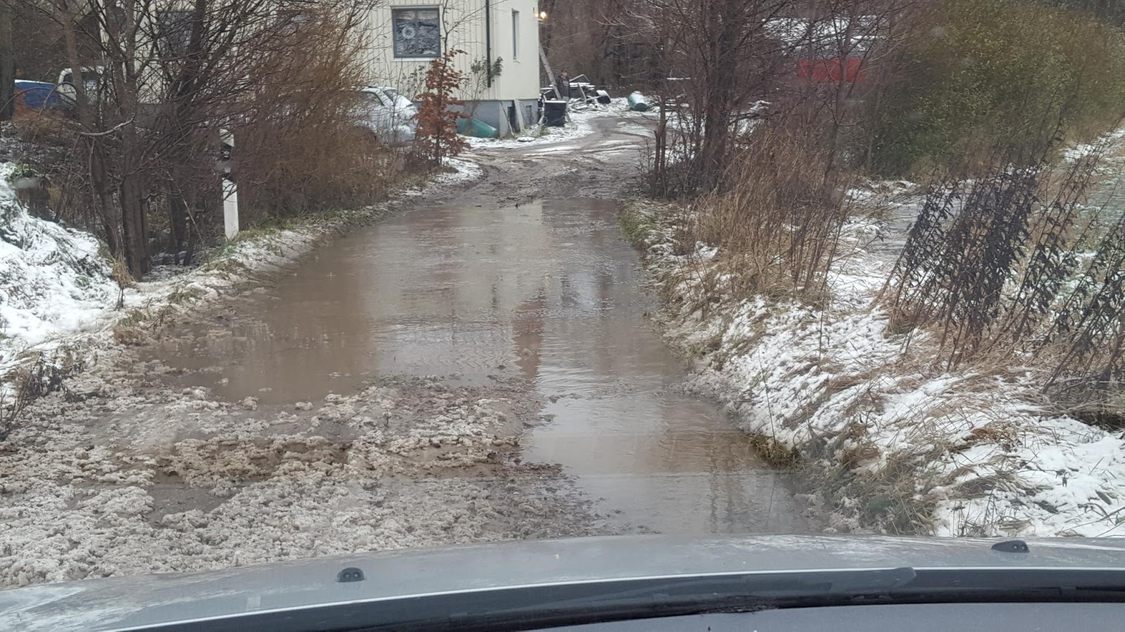 Så här såg det ut när jag kom hem i går. Sten har grävt kanaler som leder vattnet dels ut på åkern och dels till en gammal dräneringsbrunn. I brunnen har han placerat en dränkbar pump som han fått starta om varannan timme hela natten. Trots att enorma mängder vatten förs bort så är källaren i fara.