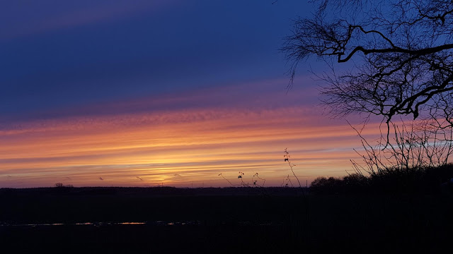 Det blev ett par tuffa timmar på Center Syd. Men nu är det gjort. Ville är korthårig igen. Och finfin. Mina örhängen är bytta mot en silverkedja till berlocken jag fick av Sten. Min klocka är inlämnad för batteribyte. De kunde inte stänga den! Jag har köpt ett par hemmatröjor och fikan tog vi i bilen. Väl hemma möttes vi av den här underbara solnedgången. Nu ska jag veckohandla. Online. Tjo!