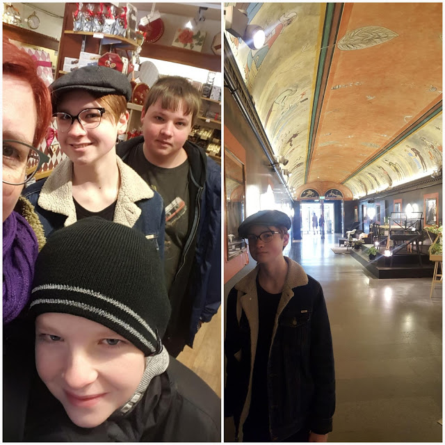 Vid elva var Jotun parkerad i garage Anna och våra väskor instuvade i hotellets bagagerum. Fem timmar senare har vi ont i fötterna men är fyra glada lantisar på varsin plats i det stora rummet. Jag har fyndat ljusstakar på Emmaus, köpt choklad på Ahlgrens, rökelse på Sök och Finn och en kopp på Designtorget. På Gateau köpte vi bröd till kvällsmaten och Sci-fi-bokhandeln slet vi oss ifrån utan att handla.