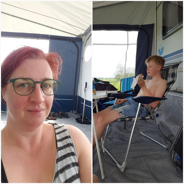 Fika efter dagens dopp i havet. Vattnet var betydligt varmare än i går pga pålandsvind. Samma vind som gjorde den korta promenaden till badet till en utmaning. Nu smakar kaffet syndigt gott och livet är fint.
