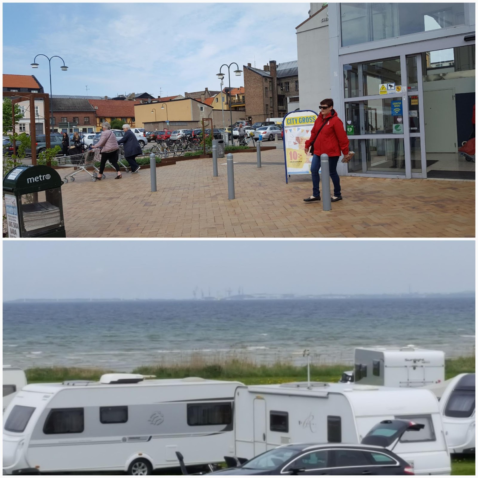 Olle ska gratulera kompis idag så jag körde honom till Landskrona. När jag ändå var där passade jag på att köpa kvällsmat (pyttelitet kylskåp) och ett par dvd-filmer (utan wifi, ingen streaming). Det var så smockat med folk på City Gross att jag nästan kräktes i en papperskorg. Nu är jag tillbaka i det blåsiga lugnet.