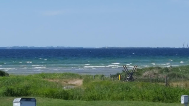 Efter en finfin handledningsträff köpte jag lunch som jag åt i bilen. I parkeringsgaraget. När man väljer det framför en parkbänk i solen vet man att man är lite hjärntrött. Sedan körde till husvagnen, lade mig på en solsäng och snusade lite. Sedan. Vågorna. Varma och allt förlåtande.