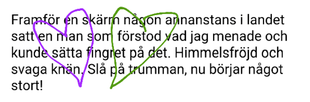 Framför en skärm någon annanstans i landet satt en man som förstod vad jag menade och kunde sätta fingret på det. Himmelsfröjd och svaga knän. Slå på trumman, nu börjar något stort!