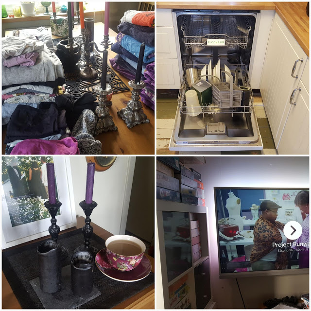 När det blir bergsklättring av tvättvikning och styrkepass när växterna ska vattnas. När räkningarna hänger som kväljande åskmoln över skallen. Då pausar hon med en kopp te framför Tv:n.