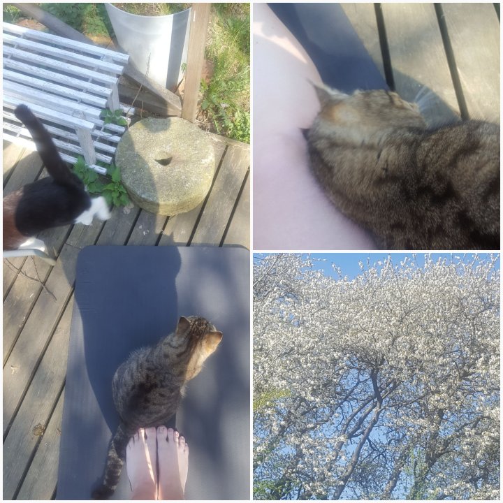 Yoga utomhus med kattsällskap och skön utsikt. Ett ypperligt sätt att avsluta jobbveckan på. Nu måste jag bara duscha bort alla allergener för att få ro…