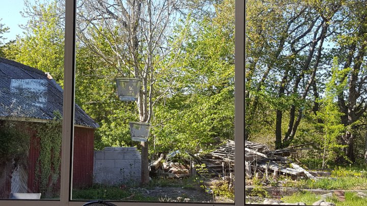 Ville har städat badrummet och Olle har putsat utsidan av hälften av uterumspartierna.