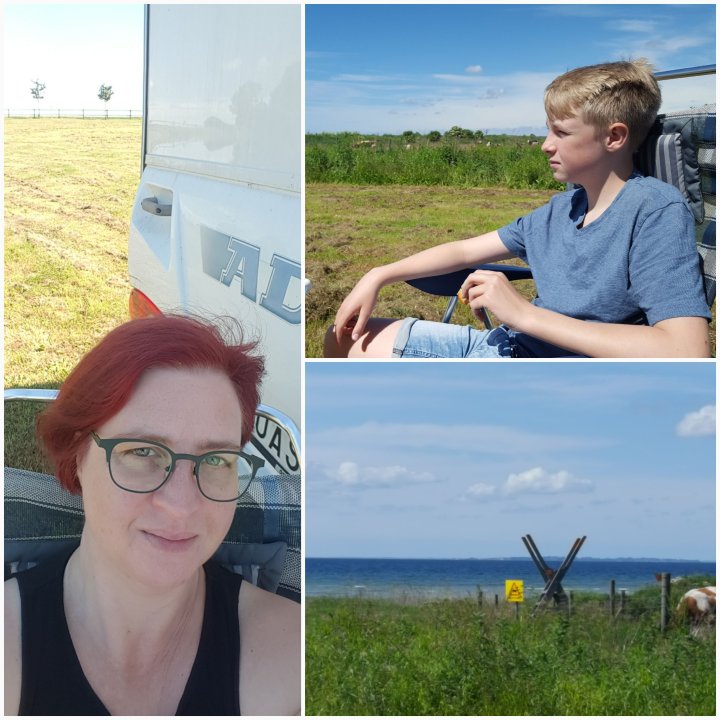 Trots att vi inte har någon el i vagnen, trots att vi inte fått upp förtältet. Trots att det blåser svalt i skuggan.
