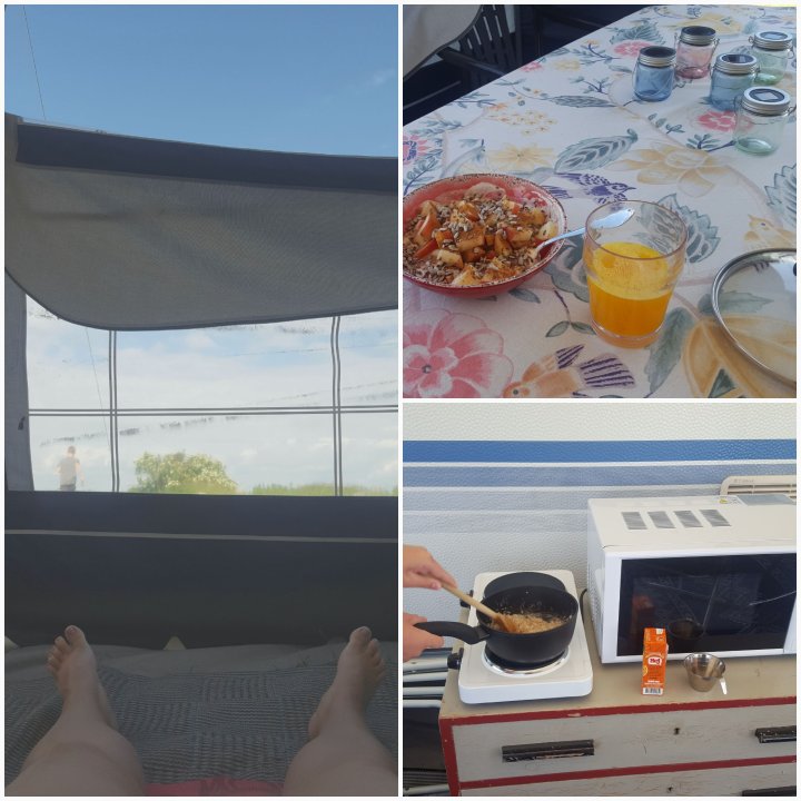 Sovmorgon, yoga/jogging, stillsam promenad ut i vattnet, bad, frukost i förtältet.