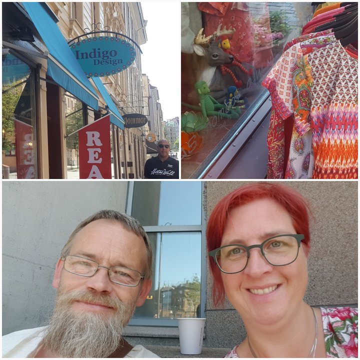 Efter en dag på fötter ger vi upp tidigare än vanligt. Glada är vi hur som helst. Haga levererade med skjortor till Sten och tygväskor till mig. Nu blir det gött att komma hem och krama tonåringarna. Ett par timmar på tåg först, bara.