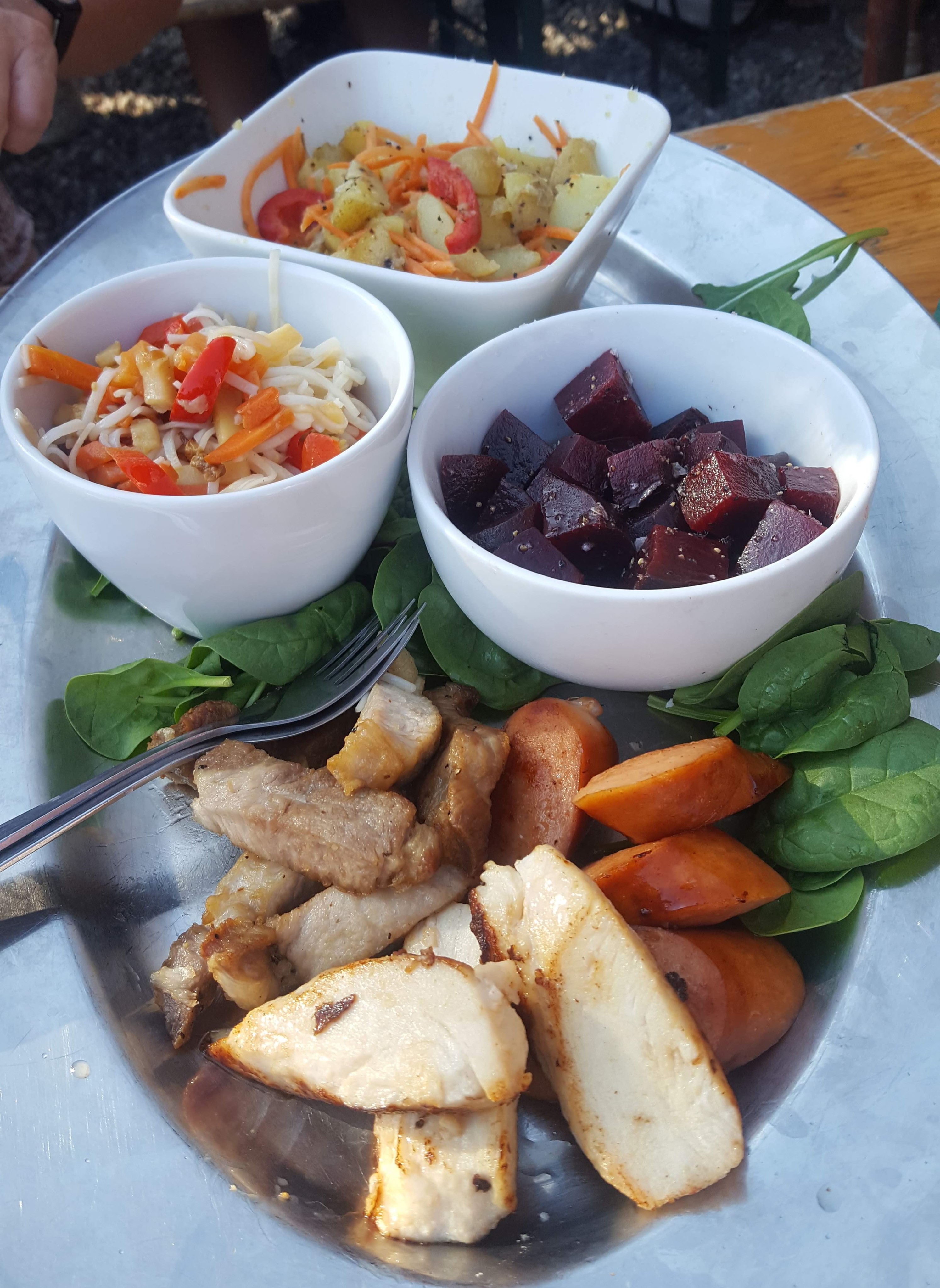 K: Jaha! Det är du som är den! Det blev en liten utmaning för oss men om du sätter dig så kommer jag ut med det vi fixat. Vi har gjort en egen buffé åt dig.