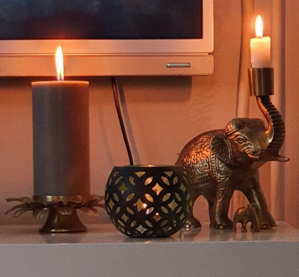 Nu har jag planterat mig i soffan igen. Idag med en ny ljusstake på första parkett.