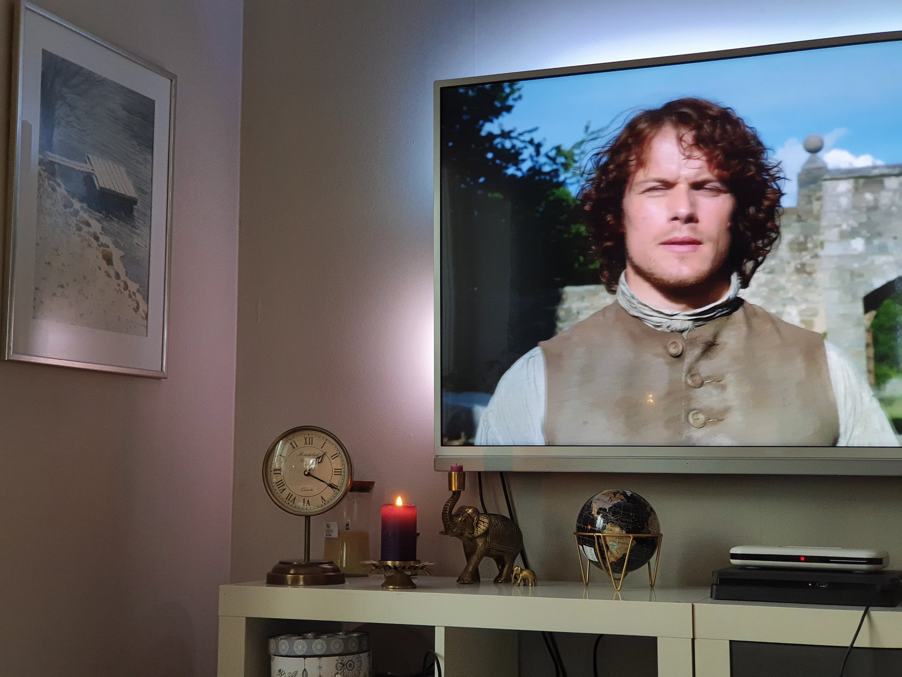 Arbetsveckan är slut. Försommarvädret kom av sig. Outlander och tända ljus. Tjocka filten och extraelementet igång.