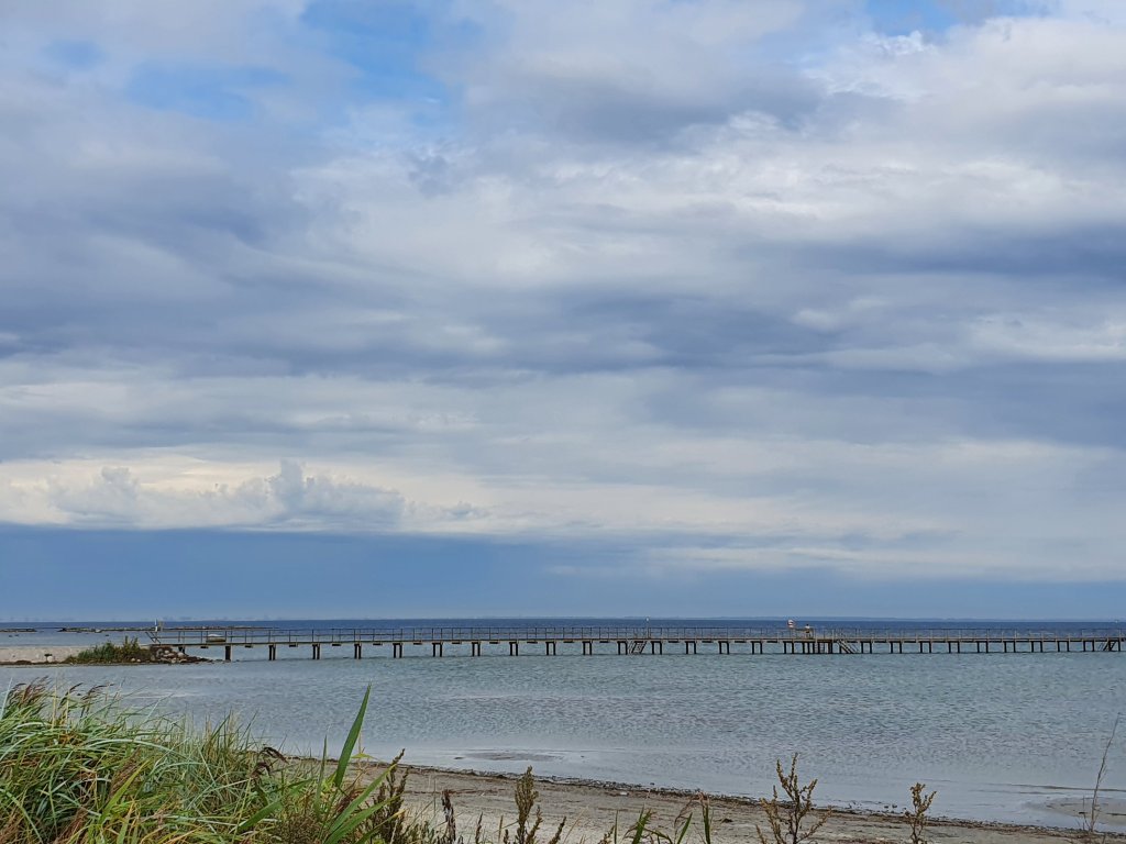 Nu kommer vatten även ovanifrån och snart är jag inte ensam längre. En kär vän jag inte träffat på alltför länge kommer på kaffe med havsdopp.