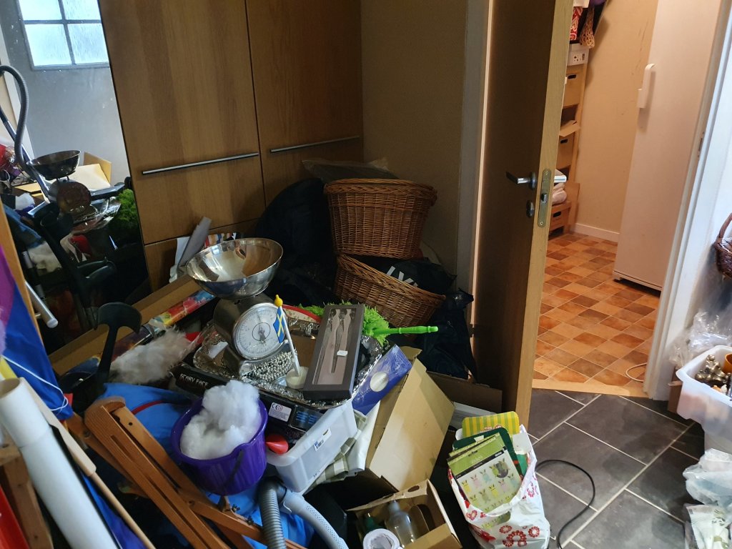 Allt du ser låg på golvet i förrådet, nu jobbar vi med att sortera på hyllorna. I morgon kanske vi kan börja plocka in igen.