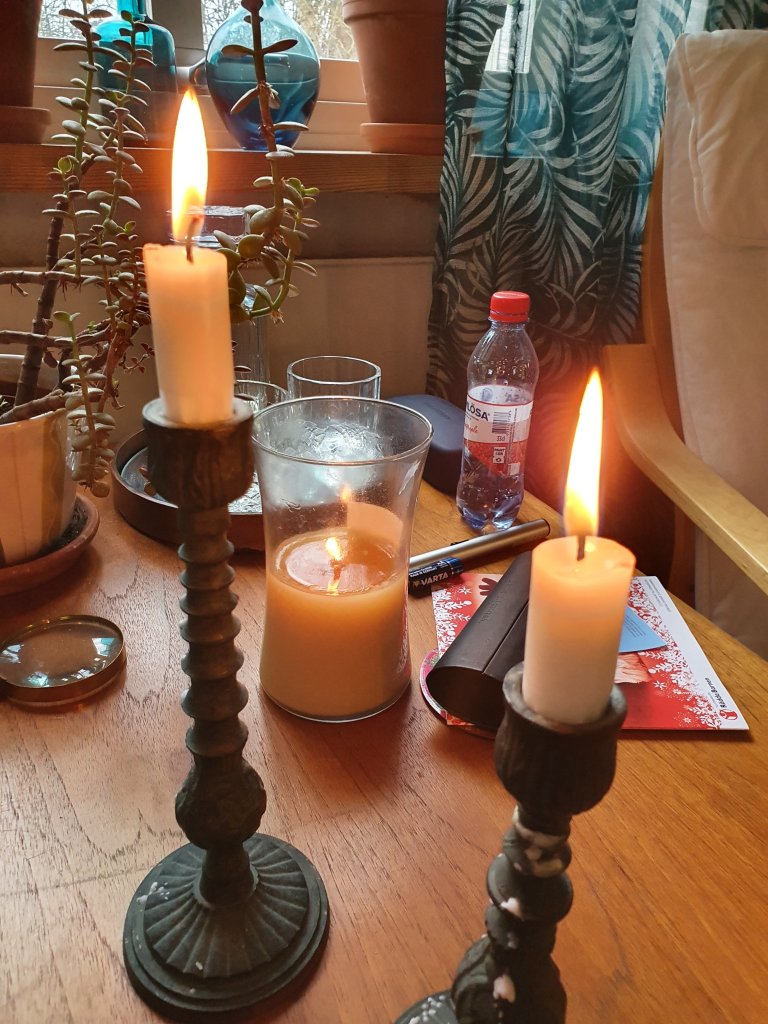 Ville kom förbi på en rast. Och han har ju rätt. Det är mysigt att jobba hemifrån. Mjukiskläder, tända ljus och nära till både kök och tjotta.