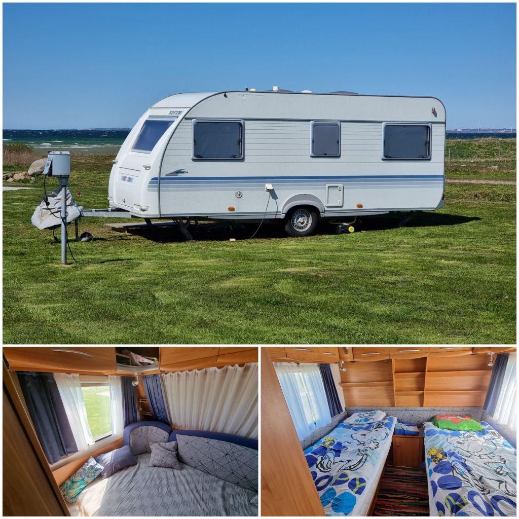 Vi väntar med att sätta upp förtältet men vill vi sova över är vagnen redo.