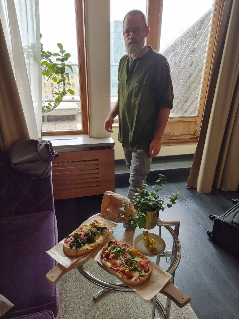 Efter det har vi hängt i hotellrummet med bästa badrummetoch egen terrass på åttonde våningen.