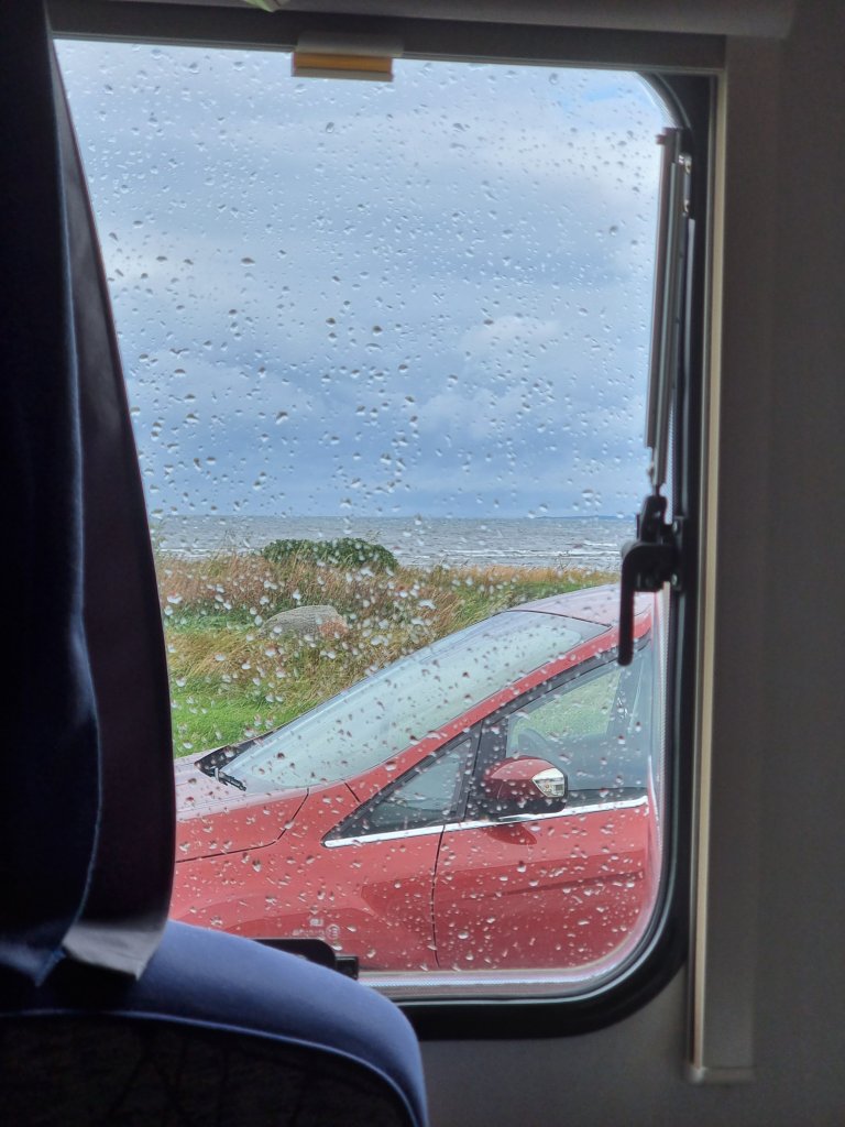 En sista stund i husvagnssoffan innan Sten kommer för att dra hem vagnen.