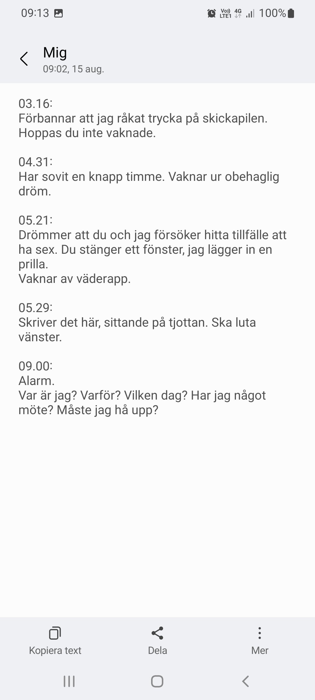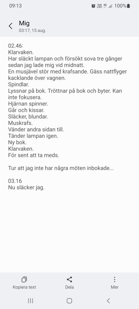 En ganska vanligt förekommande nattupplevelse Dela det här: Dela på X (Öppnas i ett nytt fönster) X Dela på Facebook (Öppnas i ett nytt fönster) Facebook Gilla Laddar in … Relaterade
