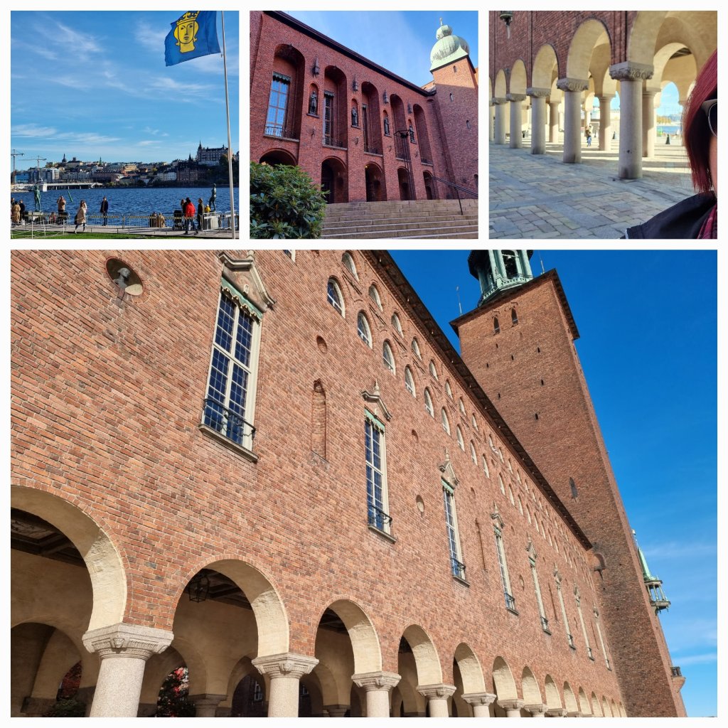 Så här sitter jag nu och fikar på en bänk med det mäktiga stadshuset bakom ryggen.